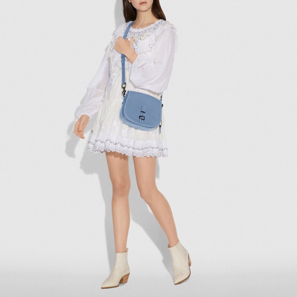 FIRST INTRODUCED IN 1972 AND BELOVED THROUGHOUT THE YEARS, THE SADDLE BAG IS A TIMELESS COACH DESIGN. UPDATED WITH A SIGNATURE SLIDE TAB CLOSURE, THIS GLOVETANNED LEATHER STYLE FEATURES AN ORGANIZED TWO-COMPARTMENT DESIGN.