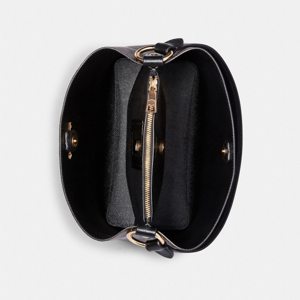 Our spacious Signature canvas and smooth leather Town bucket bag is an essential style with a long detachable crossbody strap and a top handle for versatile wear.